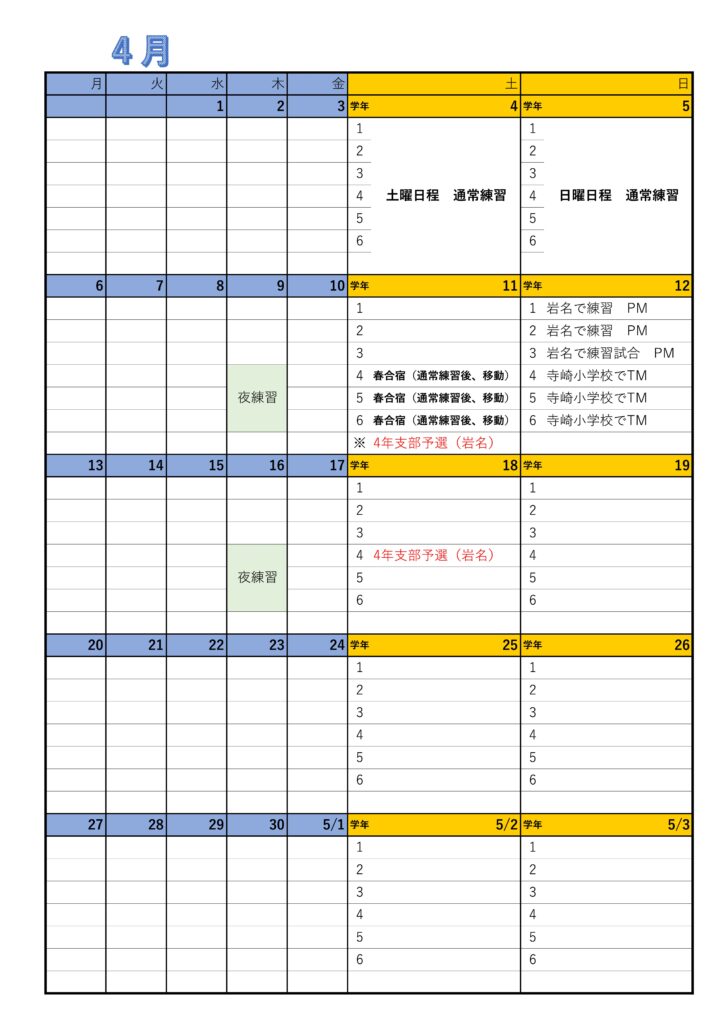 • 1年生・キッズ(2025年度)